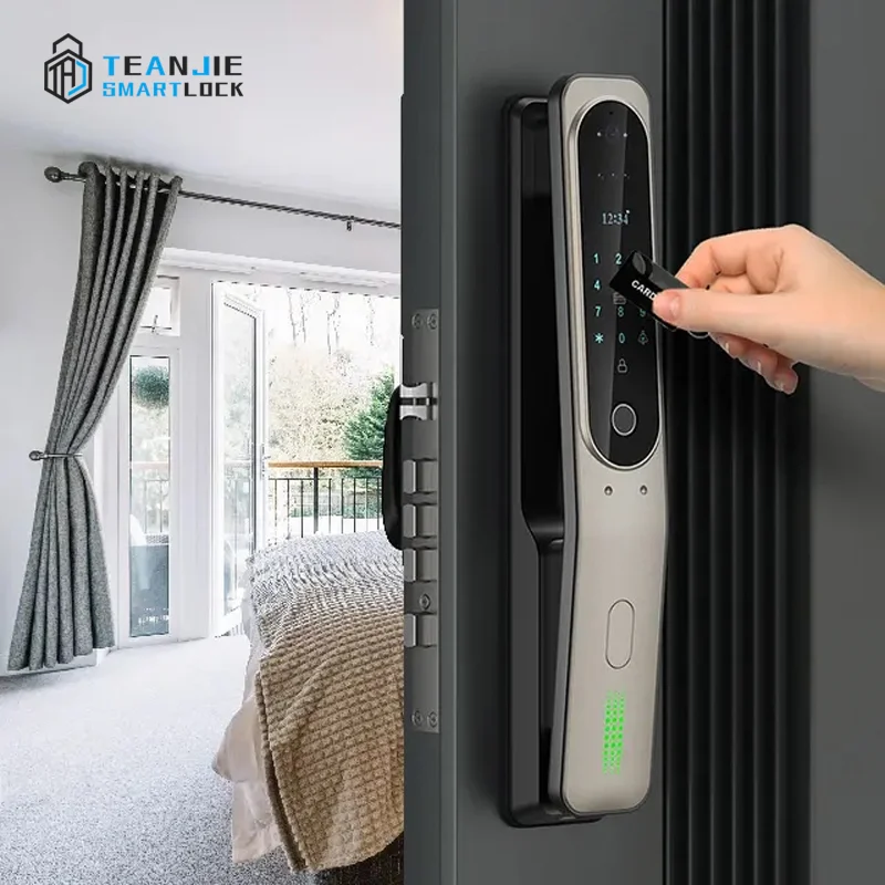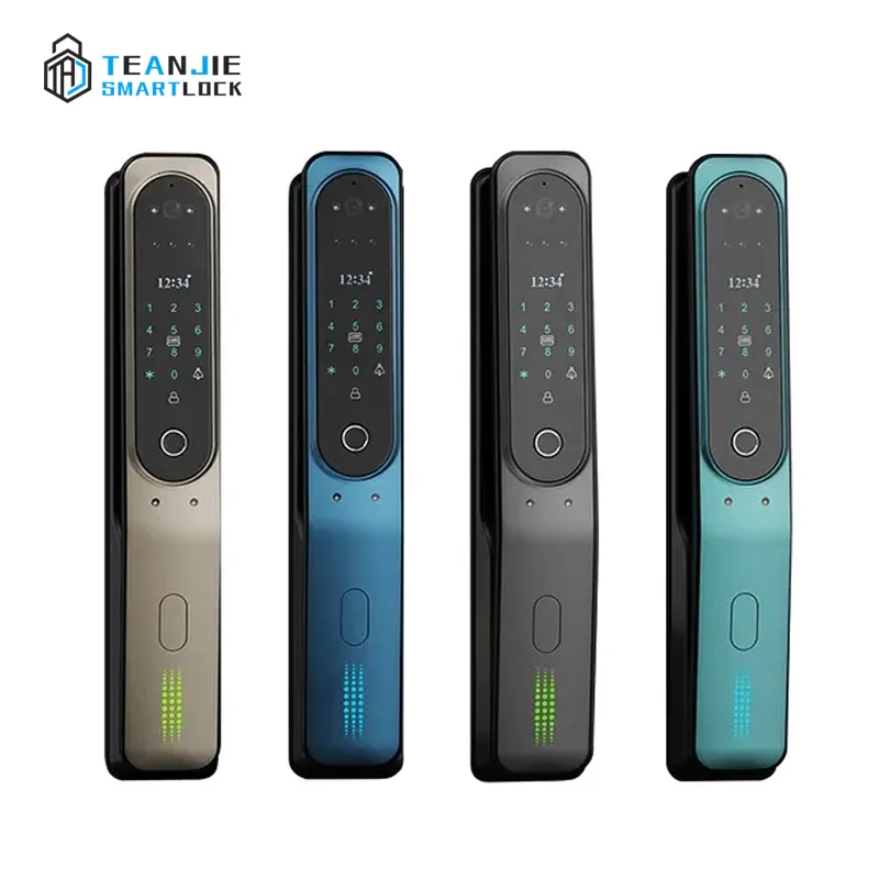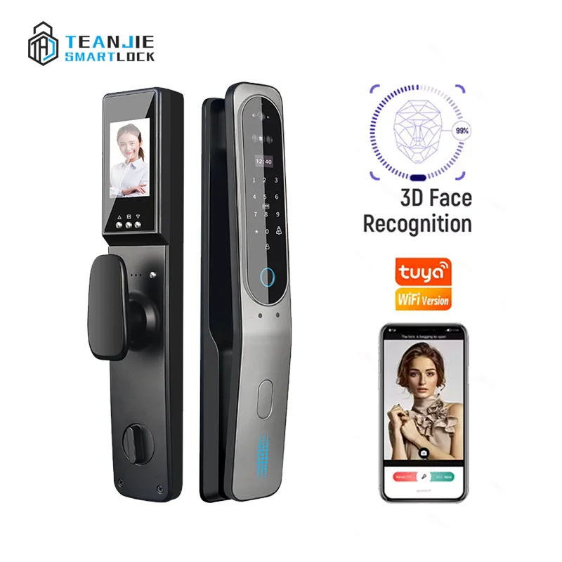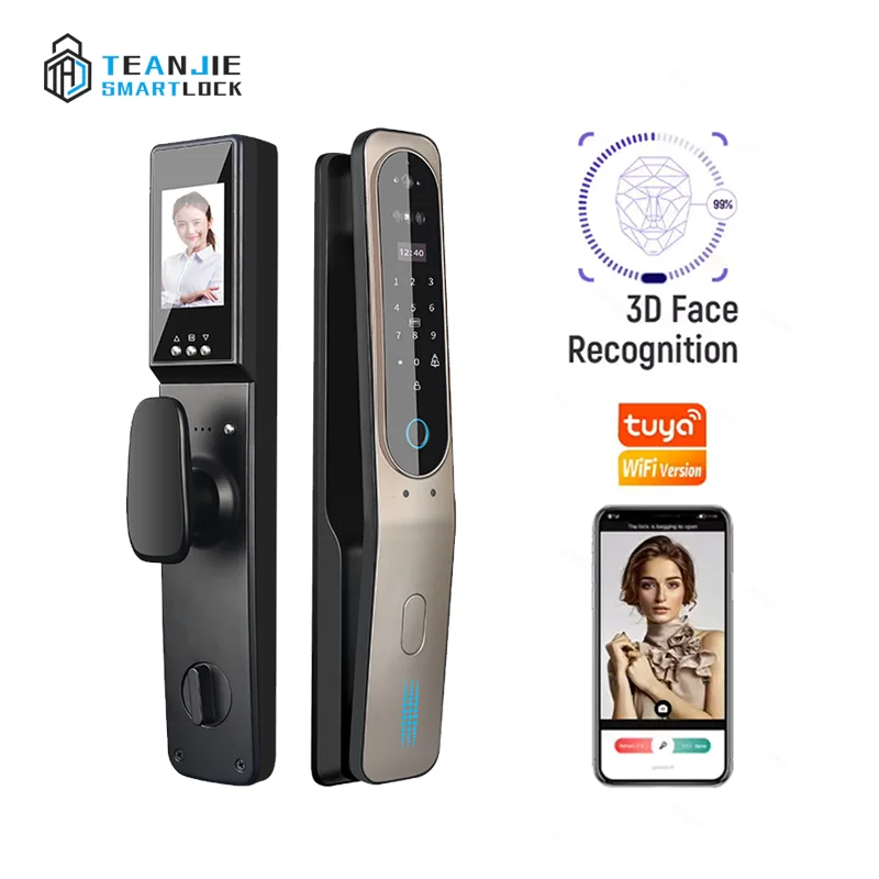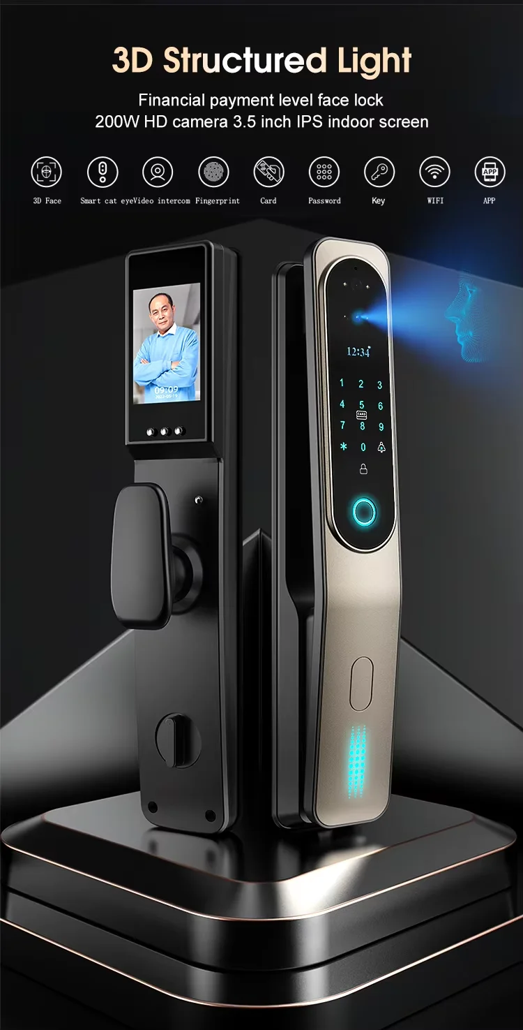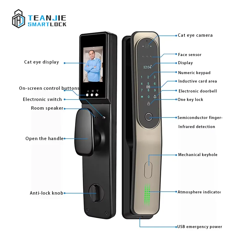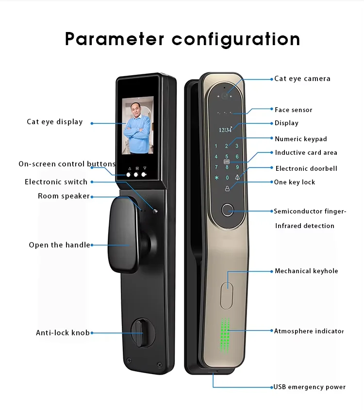 2. With built peephole camera, you can view the visitor through the built-in screen, and when someone press the doorbell, the lock will take the picture of the visitor and send the photo to your mobile phone.